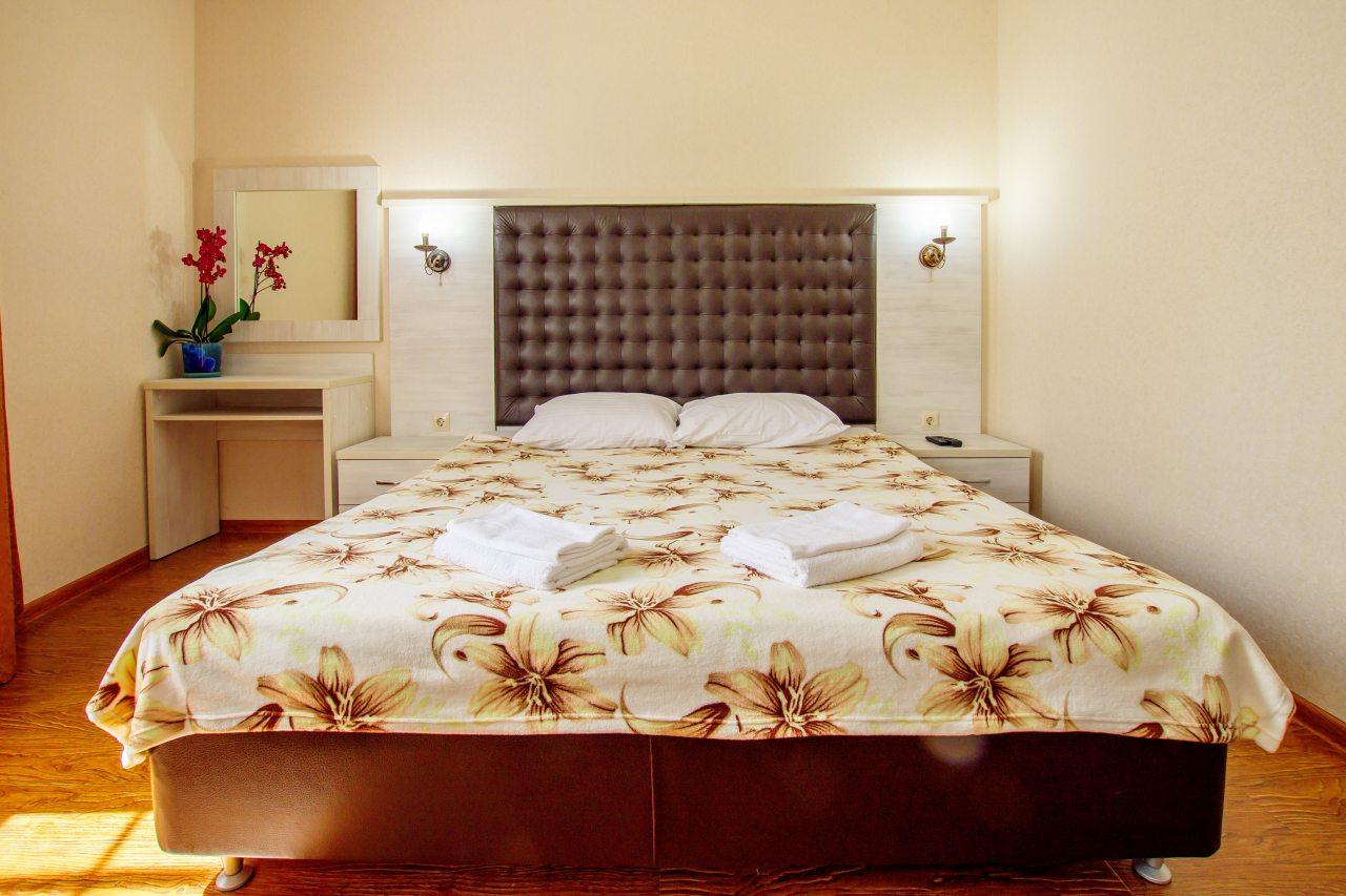 Трехместный номер Делюкс — это комфортное решение для небольшой семьи или компании друзей. Номер оснащен одной двуспальной и одной односпальной кроватью, что делает его удобным для отдыха.